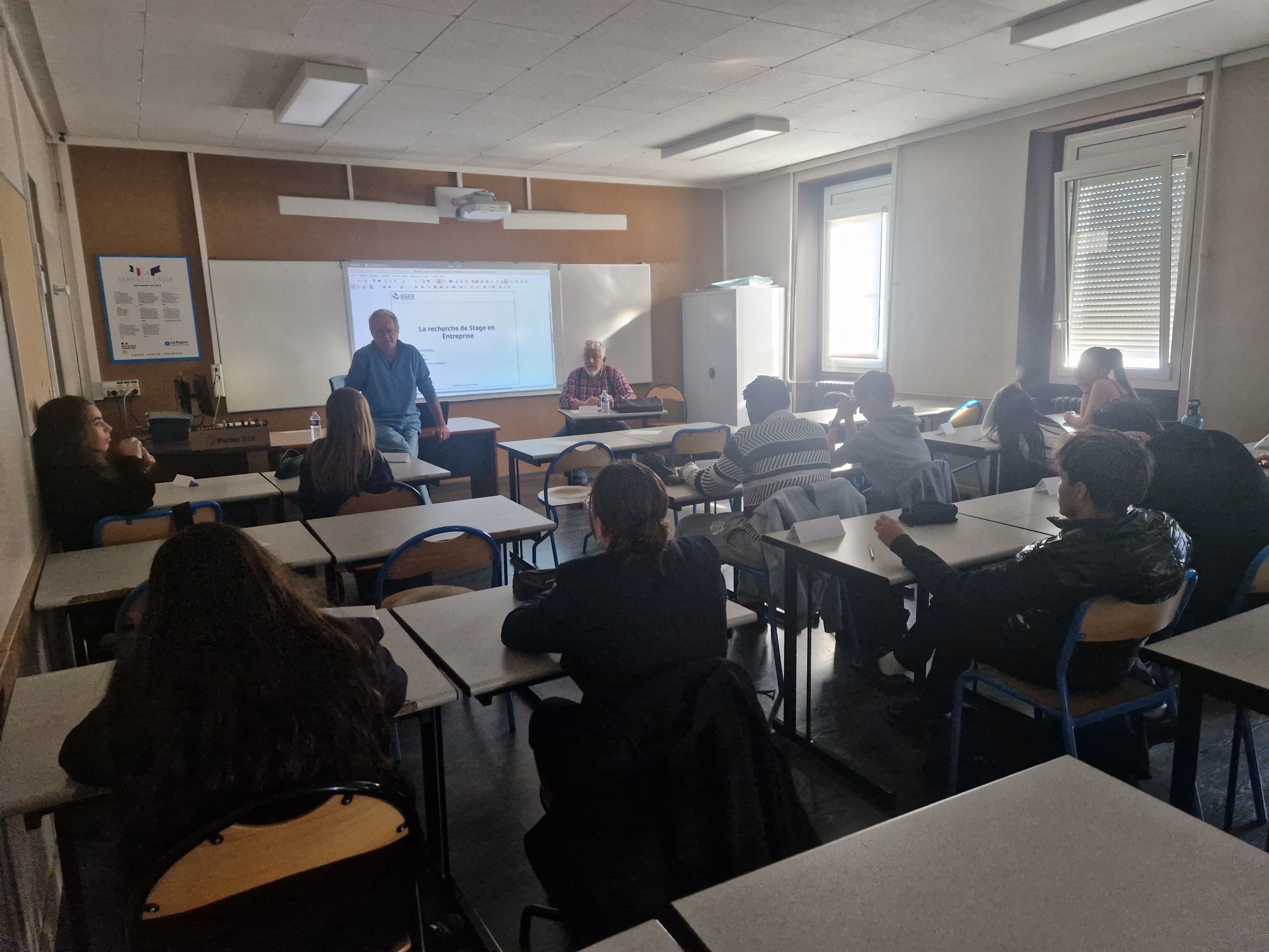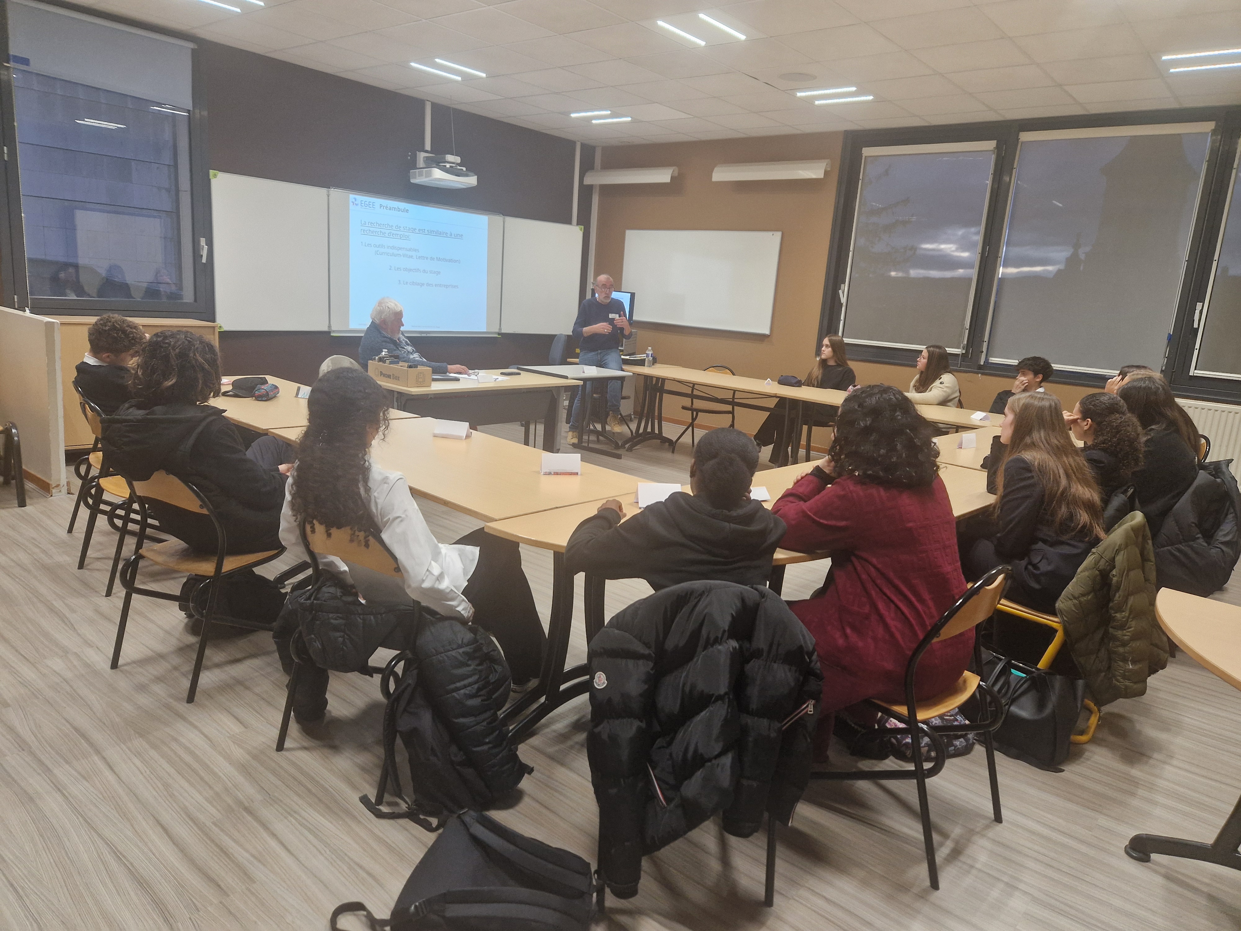 Dans le cadre des actions menées par notre établissement pour permettre aux élèves d’assurer pleinement leur rôle et leurs responsabilités pendant la période de formation en milieu professionnel : 60 élèves des secondes professionnelles MGATL et MRC ont profité des conseils précieux des intervenants de l’association EGEE (Entente entre les Générations pour l’Emploi et l’Entreprise) les 10 et 17 novembre 2025.